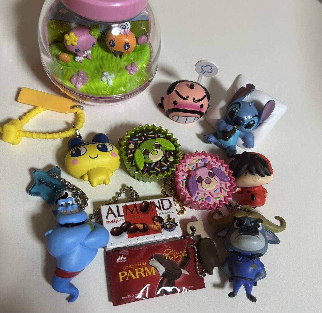 他にも、好きなキャラクターのものや食べ物のガチャガチャを回すことが多いです。